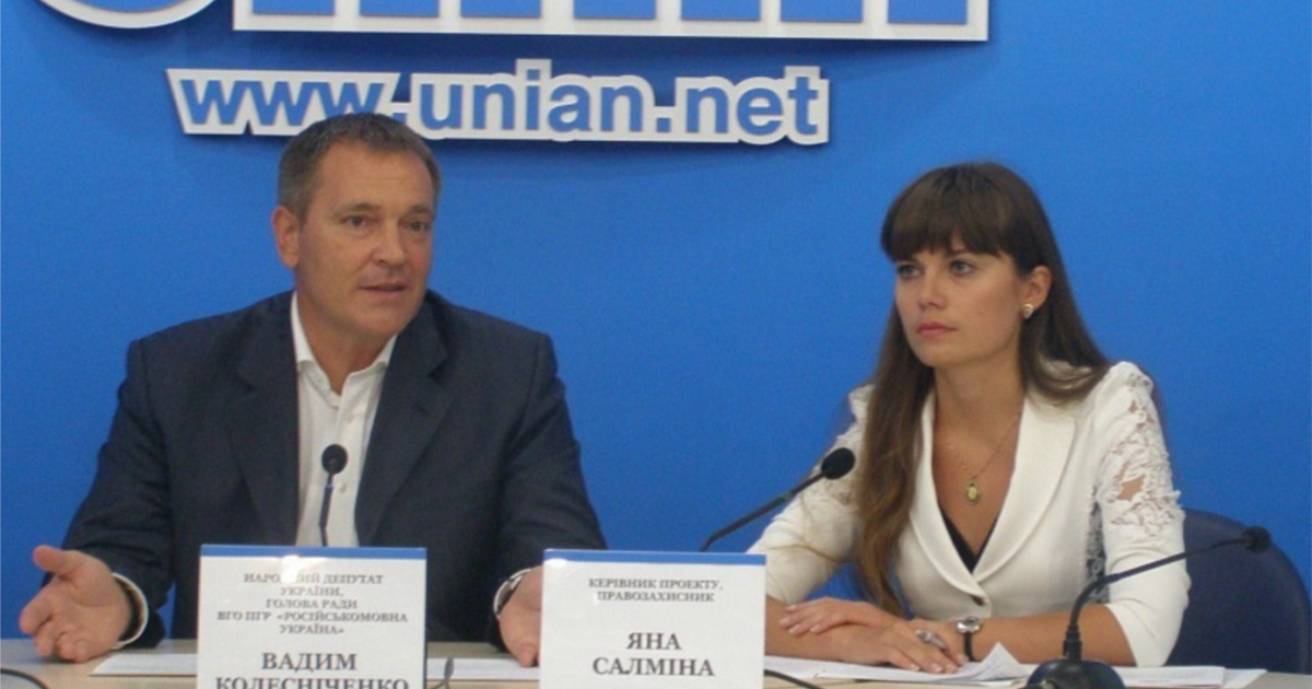 Інша – «Російськомовна Україна», де вона тривалий час працювала, як юристка і менеджерка проєктів і грантів. Це організація вже колишнього народного депутата від «Партії регіонів» Вадима Колесніченка, якою після втечі політика з України у 2014 році керує чоловік Салміної Сергій Шостак.